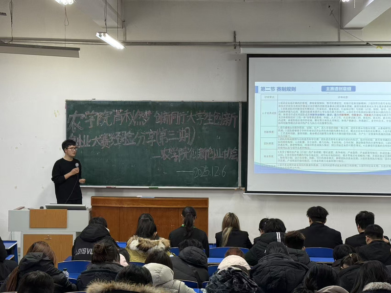 为助力农学院本科生深化对创新创业赛事的认知、激活创新思维,12月6日下午,农学院创新创业协会于主楼副楼215室举办“菁禾燃梦 创新同行”大学生创新创业大赛经验分享会(第三期),近150名同学参与本次活动。
