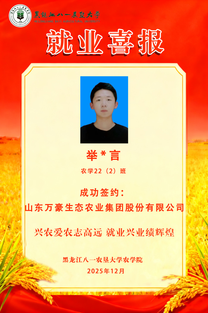 就业喜报丨农学院2026届毕业生就业喜报(十一)
