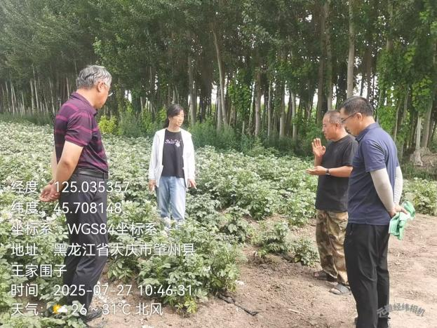 为充分发挥科技特派员各自专业特长,推动科技创新与县域特色产业深度融合,2025年8月20日,农学院教师张翼飞、姜丽丽、于崧和张春雨带领相关领域研究生,组团奔赴大庆市杜尔伯特蒙古族自治县,在县工信科局相关领导陪同下,开启了一场“一镇一策”的精准农技服务行动。
