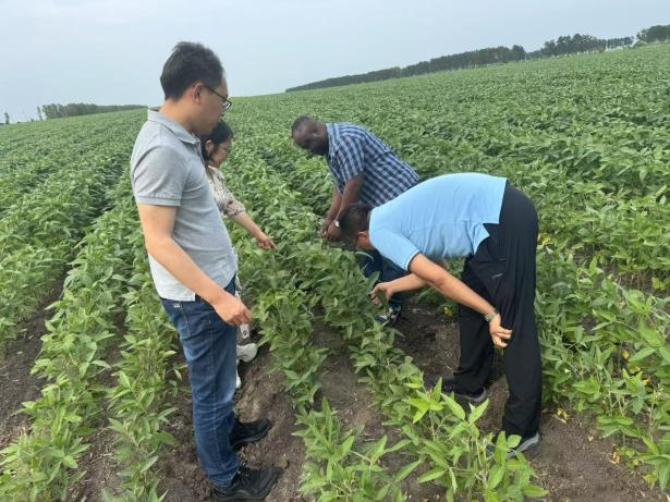 2025 年 7 月 10 日,农学院教师付健作为五大连池市龙镇科技特派员,邀请农学院专家孙明哲教授、孙晓丽教授、博士后George前往龙镇开展农业技术指导,针对龙镇大豆、玉米品种选择、栽培技术应用和作物田间管理等农业生产问题进行现场交流,交流过程中针对龙镇大豆品种选择单一,田间管理过程中除草剂、杀虫剂、叶面肥等产品选择不当问题提出了解决方案和技术指导。
