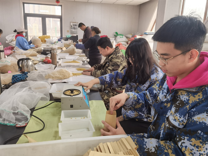 实习感悟:4月3日我们伴随着清晨的微光来到了北大荒垦丰种业股份有限公司。我们在参观公司时不仅了解了公司的发展历史、研发成果和办公云系统,还在研发楼里见到了许多从未见到过的先进设备。在垦丰实习的这半个多月中我们团队成员跟随大豆组的老师进行播种前的准备:挑豆、数粒、装袋、排序,每一个环节都至关重要。在挑豆时要仔细挑选无破损无病菌的豆粒;数粒时可以采用数粒板或数粒仪;装袋时要封好袋口并标注好对应的品种名,防止撒粒、混种;最后的排序工作要认真检查数量以及品种名称,需要细心的注意区分相似品种。实习期间每天都非常充实,我学到的不仅仅是如何将理论联系实际,更多地是为人处事、不耻下问,我慢慢学会了如何独立思考问题、解决问题。我会将这段宝贵的实习经历作为人生新起点,不断要求自己、完善自己。