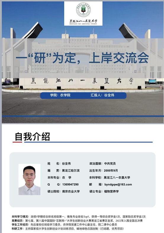 谷全伟,农学院党建工作中心副主任,目前已推免至南京农业大学。