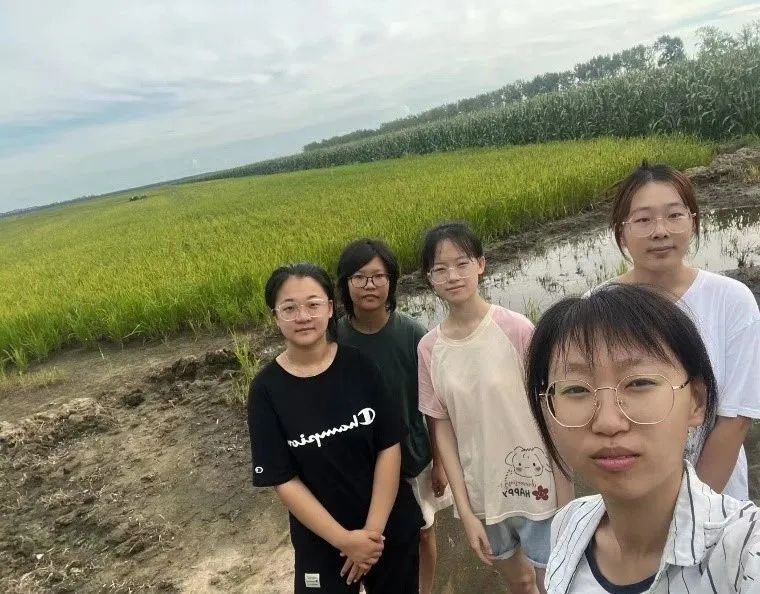 小队成员在水稻地前合影留念