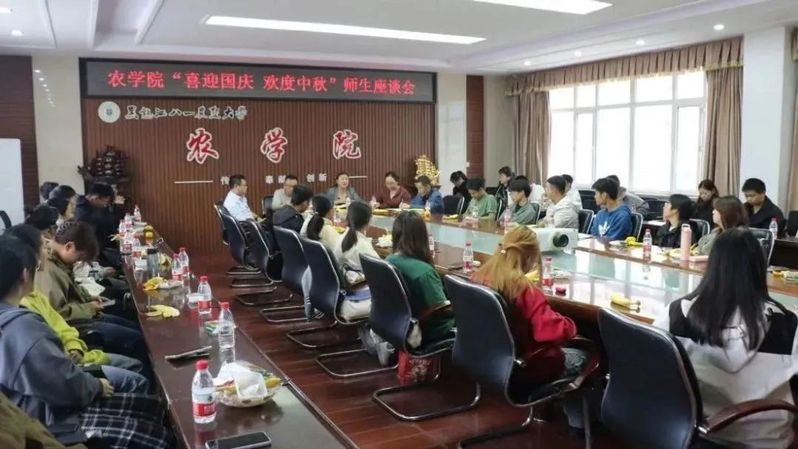 “中秋月满人欢聚,国庆祥和龙富强”在“中·国”双节到来之际,为留校学生能够度过一个有意义、更温馨的中秋佳节,9月29日农学院开展“喜迎国庆 欢度中秋”师生座谈会,师生共叙佳节情思、畅谈农人情怀。学院领导班子全体成员、分团委辅导员和班主任代表、40余名留校学生代表参加了座谈会。