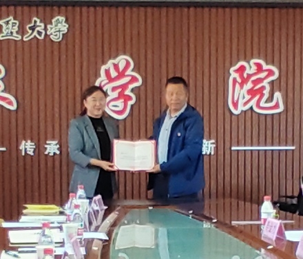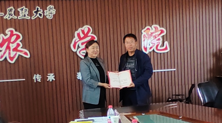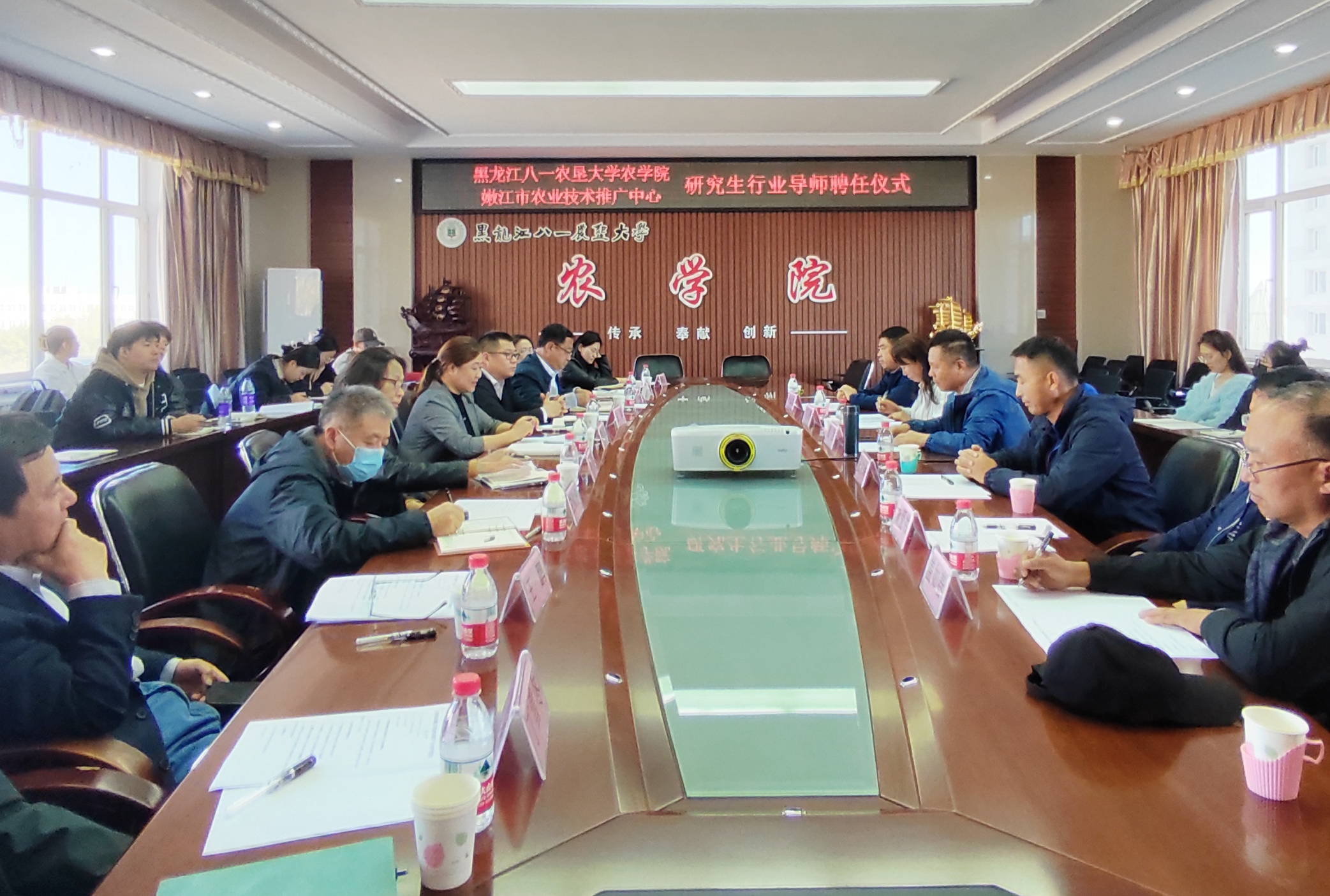 随后,双方进行研究生导师聘任仪式。杜吉到副院长向参会人员介绍了近年来农学院向推广中心派驻的研究生情况,感谢中心对于买球赛的app官网学生培养工作的支持,学生试验、工作及人际交往能力显著提升,希望双方今后以联合培养为基础,取长补短,发挥各自的特色,在人才培养、师资建设等方面加强联系,增进交流与合作。张守林副主任就派驻研究生在中心工作开展情况进行了介绍,并表示八一农大的学生具有较高的科研能力水平,今后会全面对接好学生培养工作,以最好的条件保障学生全面成长成才。双方就人才培养进行探讨,按照专业型硕士培养目标,加强农业科技创新人才培养。通过实践,更好的将理论知识应用到实际工作中去,提高解决问题的能力,促进人才的全面发展,培养综合型人才。