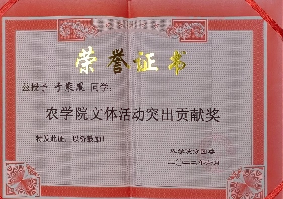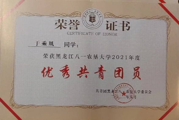 校十佳大学生、省三好学生、 三好学生、优秀共青团员、优秀志愿者、优秀学生骨干、优秀运动员、卓越运动员、文体活动突出贡献奖;国家奖学金、国家励志奖学金;一等综合奖学金、二等综合奖学金、三等综合奖学金;“建行杯”第八届黑龙江省“互联网+”大学生创新创业大赛铜奖;第21届全国大学生田径锦标赛男甲110米栏第五名;中国高等农业院校第十届大学生运动会男乙400栏、110米栏双季军;黑龙江省第18届大学生运动会男甲400米栏、110米栏双冠军;两次打破校运会男400米栏记录。