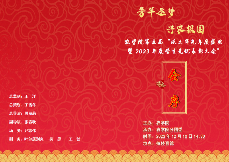 郭永霞院长总结致辞,回顾了2023年学院学生工作的突出成绩,并向同学们提出三点希望:希望同学们勇于争先,敢于克难;勤学笃实,善于创新;珍惜时光,勇毅前行。郭院长言深情切,字字句句充满力量,振奋人心,相信全体农学学子在校院两级党委的深切关怀下,定能成长为知农、爱农、强农、兴农的时代新人,为祖国农业现代化建设伟大事业贡献蓬勃的青春力量。