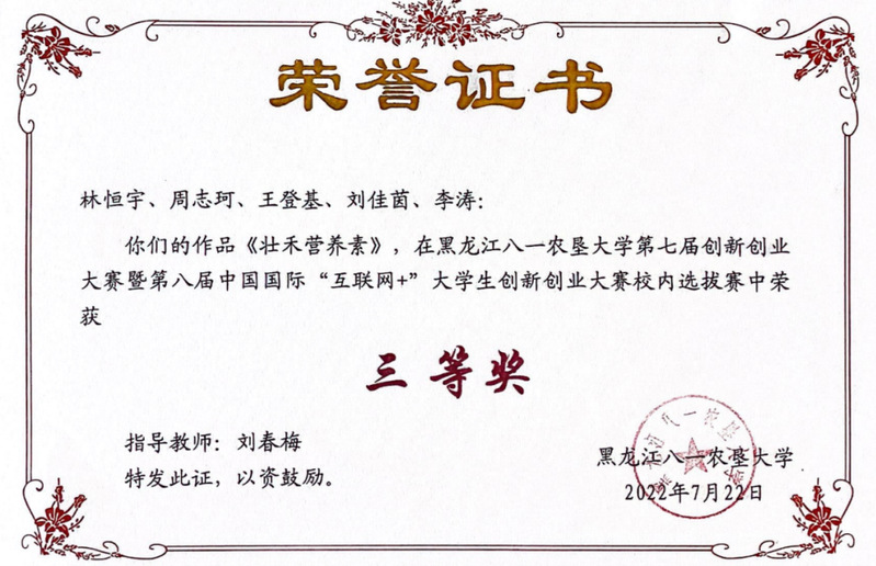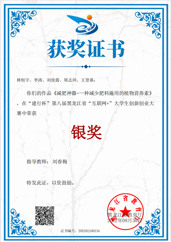第八届中国国际“互联网+”大学生创新创业大赛黑龙江赛区银奖