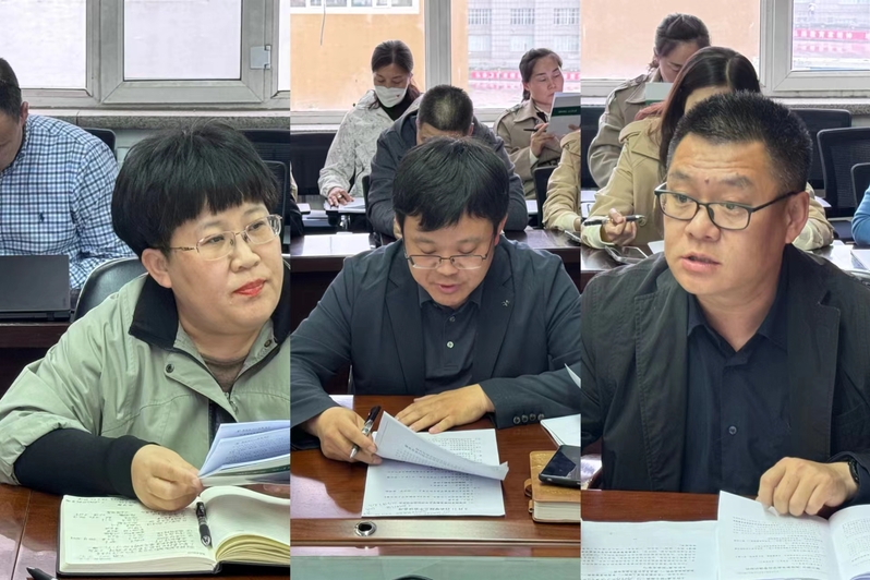 副处级组织员闻世宇、副院长张明聪、副书记王洋、副院长孙丽芳就《本科教育教学审核评估迎评工作方案》四个部分内容带领全体教师再次加强学习。