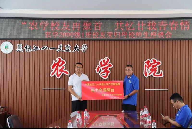 座谈会上,校友们依次分享了自己目前的生活、工作状况,并表达了对学院培养的感激之情,以及对学院未来发展的美好祝愿。姜楠书记代表学院对校友们重返母校表示热烈欢迎,为校友们毕业后事业发展取得的优异成绩感到深深的欣慰和骄傲,希望校友常回家看看,一如既往地关心关注学院的建设发展。郭永霞院长详细的为校友们介绍了建院以来学院取得的成绩、发展沿革、专业设置、人才培养、实验设施等,对校友关心关注的问题给予了解答。大家还一同观看了学校的宣传记录片,重温了学校的发展历程。观看结束后郑雯老师宣读了学校校友总会发来的贺信,对校友们的归来表示热烈欢迎,随后姜楠为2000级农学1班授予了班旗,全体教师为校友们佩戴了校徽,作物系主任付健老师代表学院接受了校友们的捐赠。