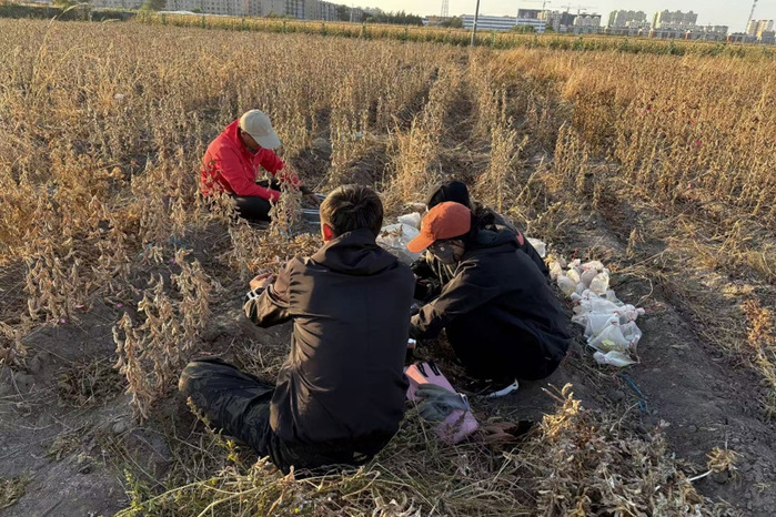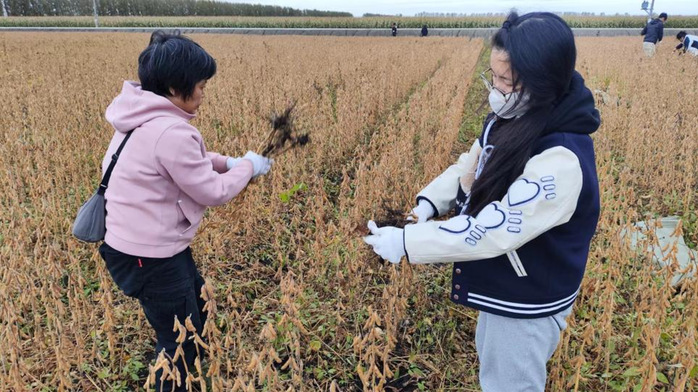 九月中旬,作物种质资源创新实验室60余名师生在杜吉到教授带领下,分赴和平牧场、安达农业科技园区、855农场、大庆启隆盐碱地等多地开展秋收工作。他们不畏艰苦,针对5000余份大豆品种,进行了人工收割、脱粒、分装等一系列细致入微的操作,展现了深厚的“知农爱农”情怀。