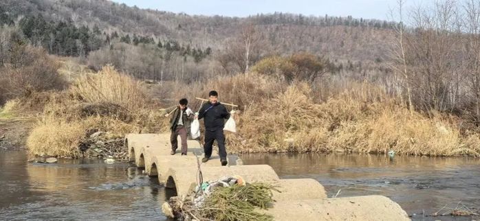 为了防范东北虎来袭,大家每人都手持“武器”,队伍中还配备了音响设备。