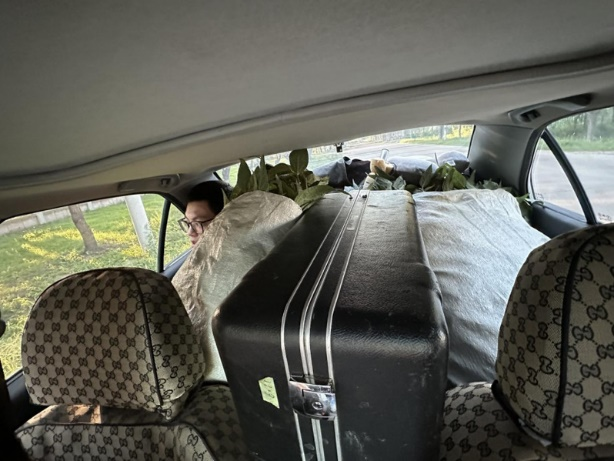 八月,开始下地取样,小小的车子承载了他不该承载的重量,空间合理运用,塞得满满当当!中午小憩,闻着豆香、席地而睡,睡的香。