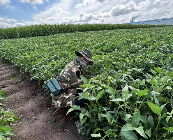 2024年,团队参与北大荒农垦集团有限公司及地方有害生物及农作物病害防控任务,定期到农场进行预测预报,主持了多项国家重点研发计划课题及子课题,通过项目示范,带动成果落地与示范推广。一年来,4月赴八五五农场调研指导植保工作,对大豆、玉米播种后期的封闭管理提出了指导性意见,进一步提升了农场病虫害监测能力。