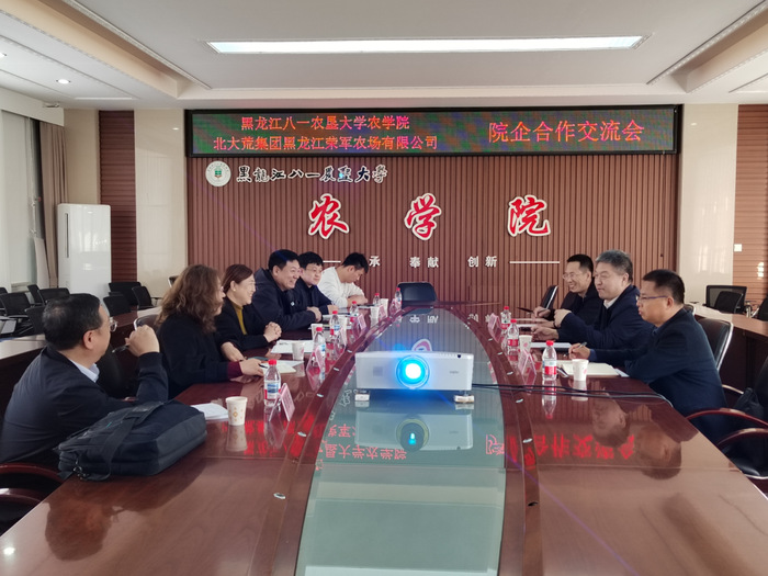 为促进农业高质量发展,加速转型升级智慧农业,落实与垦区紧密结合行动。4月16日下午,农学院召开与北大荒集团黑龙江荣军农场有限公司合作交流会。会议在农学院4001会议室举行,院长郭永霞主持会议,研究生与学科建设处处长杨克军、教学副院长孙丽芳、科研副院长张明聪、相关领域专家及荣军农场有限公司总经理董桂军、副总经理朱跃斌、农业发展部总经理高海洋参加会议。