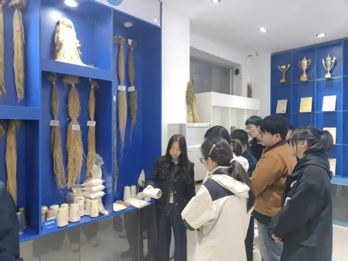 初入科学院,麻类作物所的老师们热情欢迎我们的到来,经过简单的认识后,向同学们介绍了麻类作物研究所的学科团队组成和研究方向以及代表性成果。随后带领我们参观展厅,介绍了麻类作物的发展历史和主要用途。