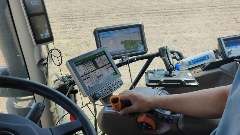 (4)实习期间,我在二十六连队的田间观察、参与和学习了大豆种子的播种工作。855播种的主要大豆品种为垦农34,在专业农技人员的悉心指导下,我系统掌握了此次播种工作中的关键要点:不仅了解了所用化肥的具体类型和特性,明确了适宜本地土壤和气候条件的大豆种子品种,还通过实地操作,精准把握了合理的种距、播种深度等技术参数。并且我亲身参与了大豆种子和化肥的搬运、添加工作了,体会实际劳动。在播种工作中,主要工作是协助农民为播种机添加种子和化肥,整理化肥袋和种子袋,依旧在播种机播种后覆土踩实。