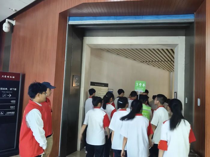 活动中,志愿者们分工明确、各司其职。在安检岗位,他们以严谨细致的态度协助工作人员核查游客物品,筑牢安全防线;在展厅内,志愿者们化身“文明劝导员”,礼貌引导游客有序参观,维护场馆秩序;面对需要帮助的游客,他们主动提供拍照服务、讲解展品背景,用热情服务传递温暖。此外,志愿者们还专项服务了哈尔滨第四中学的研学团队,通过随队讲解、互动问答等形式,帮助中学生深入理解展品背后的红色故事,让革命历史与奋斗精神在代际传递中焕发新的活力。