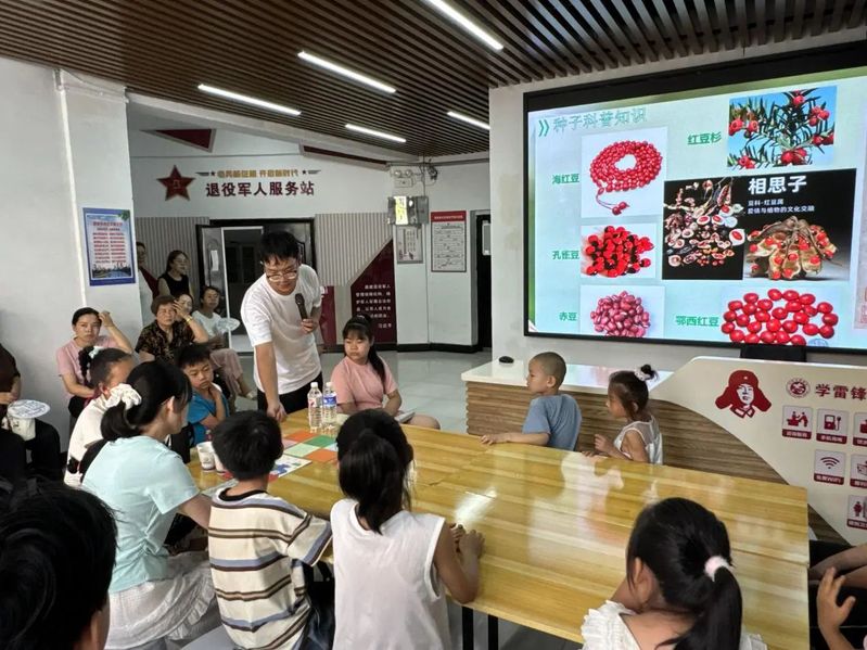 秉持农学类专业初心,实践队充分发挥学科特色优势,于 7 月 20 日面向周边社区青少年儿童,打造了一场 “知识讲授 + 动手实践” 双轨并行的农业主题研学活动。实践学生们结合专业所学,以专题讲座为引,深入浅出讲解种子内部结构、生长规律与分类知识,辅以标本展示、显微观察等直观形式,让孩子们真切感知种子的奥秘;同时,融入种子艺术创作环节,将农学知识与美学实践巧妙结合,更以北大荒精神为内核开展思政教育,引导青少年领悟农业情怀与奋斗精神。