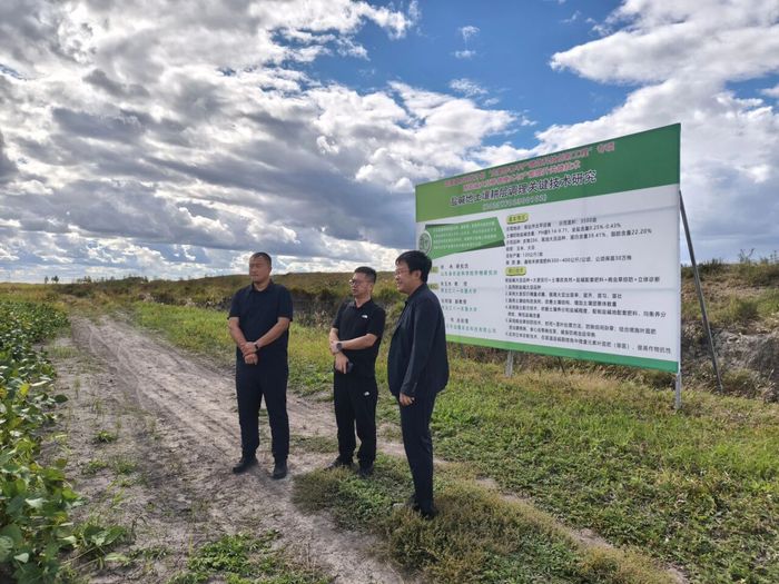 据悉,座谈会前,农学院邀请北大荒集团黑龙江四方山农场有限公司农场领导一行前往买球赛的app官网盐碱地示范田进行实地考察,农学院副院长张明聪结合示范田种植实景,详细介绍了买球赛的app官网在盐碱地改良领域的核心技术路径与实践方法,深入解读技术原理、应用效果及推广价值,旨在为四方山农场破解盐碱地治理难题、提升大豆产能提供可借鉴的技术思路与实践参考。