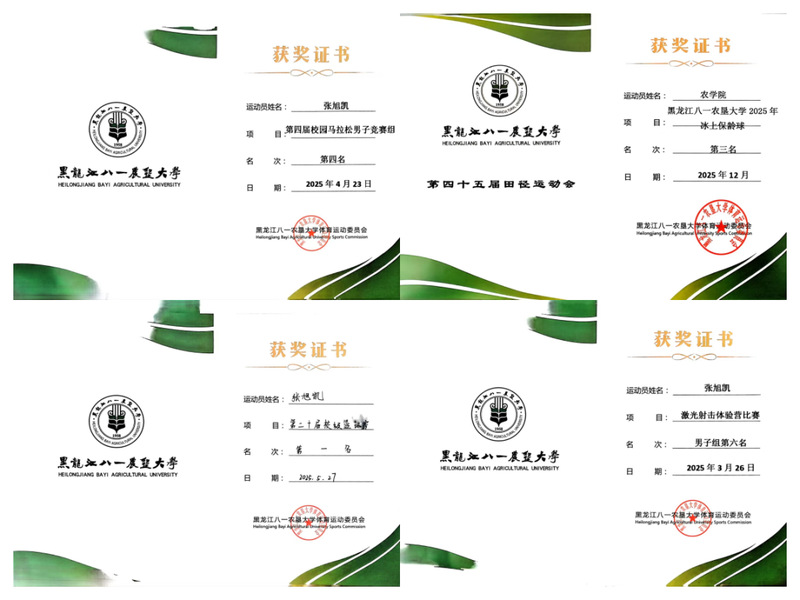 赛事竞技捷报频传:省第十九届学生运动会上,张雯包揽100米栏、400米栏冠军并助力团队获奖,成林加村获铁饼冠军、标枪亚军,陈海星、岑欣等学子分获季军及优异名次;校级赛事斩获篮球赛第一、男女排球赛双冠军等多项荣誉;校园文化赛事中,学子斩获校十佳歌手优秀奖、主持人大赛三等奖等佳绩,充分彰显学院体育育人成效与农科学子昂扬风采。