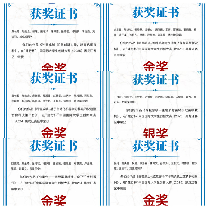 积极赋能专业竞赛与社团建设,成功承办省级植物保护专业能力大赛,获特等奖2项、一等奖5项及团体一等奖,全国赛中获特等奖2项、一等奖7项及团体一等奖;组建3个学生社团,开展双创讲座7场、研学2次、美育展览2次,覆盖1000余人次。学子在各类专业科创赛事中表现亮眼,获全国生命科学竞赛国家级铜奖1项、省级金奖1项,在第十九届“挑战杯”全国大学生课外学术科技竞赛决赛中获校级三等奖3项、省级一等奖1项、三等奖1项;孔维翊、赵子宽、林剑荣获东北三省数学建模联赛二等奖;。