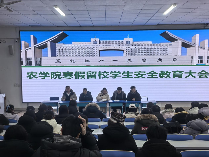 为切实做好寒假期间留校学生教育管理与服务工作,强化学生安全防范意识,保障校园安全稳定,2026年1月19日上午10时,农学院在主楼124教室召开2025-2026学年寒假留校学生安全教育大会。学院党委副书记白巍、副院长张明聪,各年级辅导员及全体寒假留校学生共300余人参加会议。