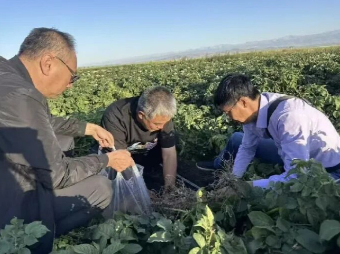 7月-8月,金光辉副研究员两次前往新疆喀什市和昭苏县,根据垦薯1号的生长特点,进行种植技术指导。买球赛的app官网培育的淀粉加工型马铃薯品种垦薯1号,在当地有一定的种植面积。垦薯1号在新疆种植面积逐年加大,相应的技术问题,加以解决,同时将新培育的马铃薯品种引入新疆进行试种,有望与当地企业开展新品种联合育种工作,能够加速新品种的转化。
