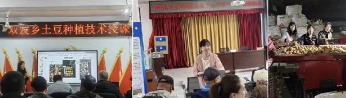 3月至10月,张桂芝作为省马铃薯体系专家成员和肇州县永乐镇科技特派员,先后赴依安、绥化、克山农场、肇州等地进行马铃薯库检、培训、田间指导和咨询等服务,并参加了学校在大同镇举办的文化科技卫生“三下乡”活动,推广马铃薯品种和栽培技术并发放技术手册,发展马铃薯鲜食和淀粉加工薯的特色种植。2025年垦薯1号在永乐镇王家围子村进行了大面积生产示范,在生长不同关键环节先后邀请农学院专家孙丽芳、张亚玲、徐晓丹、陈茜、杨丽娟及园艺园林学院靳亚忠、李春霞、杨升等一同进行了田间指导,如出苗不齐、盛期生长过旺、收获过晚等问题,提出相应技术措施,并给予相应指导。通过示范区的带头和示范引领,以增加当地农民种植马铃薯尤其是种植淀粉加工原料薯致富的信心和积极性,带动乡村镇和马铃薯产业发展。