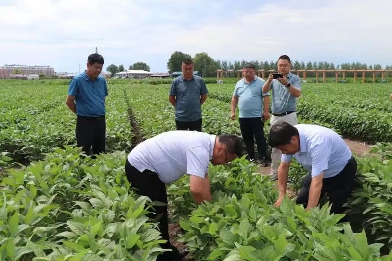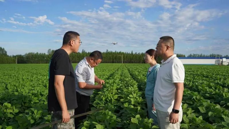 7月9日,杜吉到教授带队赴鸡西市八五五农场科技园区,现场查看大豆示范品种的长势,排查杂株与病虫害问题,并提供针对性的田间管理方案。