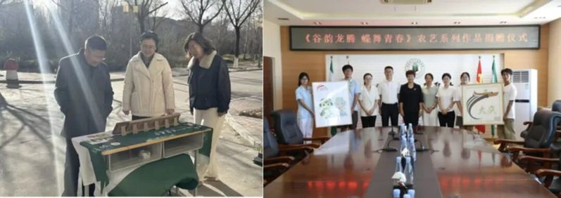 团队将科技兴农与服务育人紧密结合。除了深入一线的技术指导,团队成员还积极投身校园美育建设。在杜艳丽老师的带领下,团队依托农学院美育教育工作室,成功组织了第二届“芯”语杯种艺作品大赛,创作出广受好评的《谷韵龙腾 蝶舞青春》 系列种艺作品,相关社会实践获评优秀小队。这项融专业于艺术的美育实践,生动诠释了团队全方位育人的理念。
