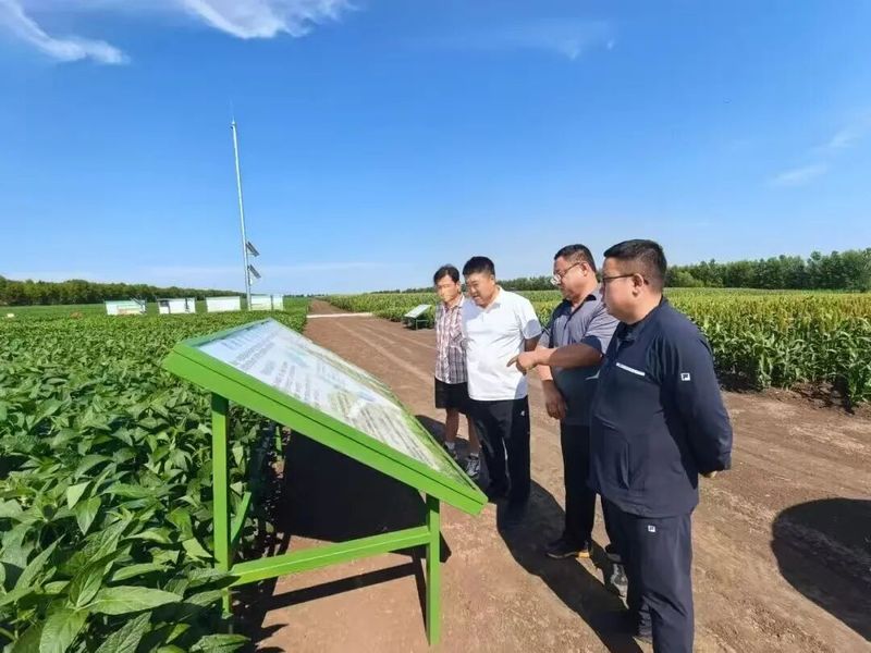7月22日,杜吉到教授一行到嫩江农场科技园区,深入查看大豆、玉米、高粱等作物的苗情长势及肥料试验进展,并就优化施肥技术、深化产学研合作等内容与农场进行深入交流。