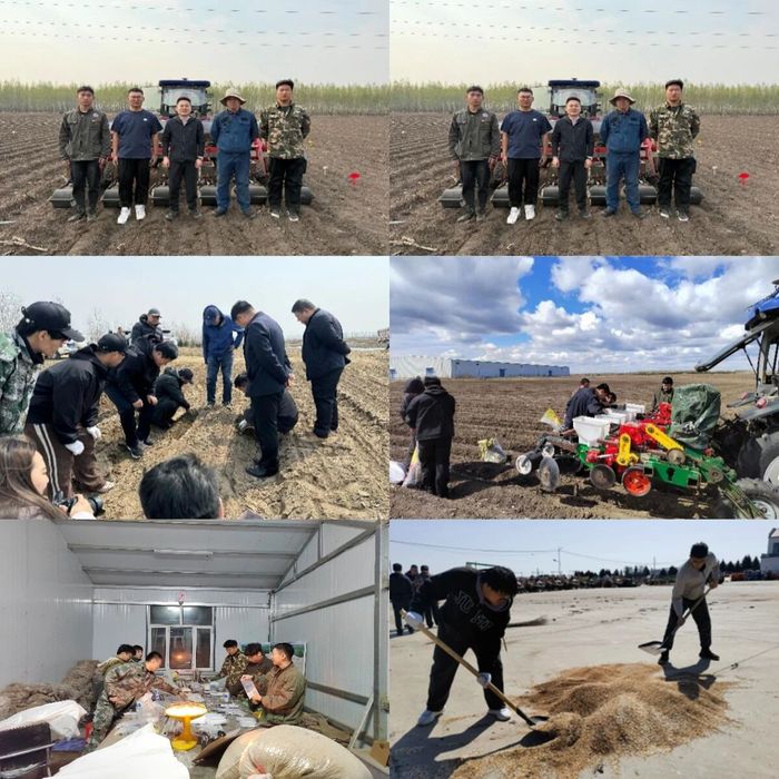 2025年仲春,团队师生奔赴北大荒集团鹤山农场、尖山农场、855农场、友谊农场、和平牧场及内蒙古自治区中和试验基地,开展春播工作。他们紧扣地域土壤与气候特质,科学规划播期与品种布局,示范高产优质大豆品种及配套栽培技术。在与一线农技人员的协作中,双方围绕密植调控、精准施肥、绿色防控等关键环节展开田头研讨。通过系统调研与数据分析,团队精准把脉区域种植的技术瓶颈,为后续科研奠定了实践根基。这一季,他们以田为纸、以行作笔,在黑土地上写下“服务农业、贡献三农”的初心理念。