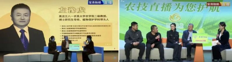 2025年3月13日,宝清县融媒体中心《燕语晨光》栏目联合县农业技术推广中心举办“大豆产量高,专家来支招”专题访谈节目,学院二级教授、植物保护学科带头人左豫虎,与买球赛的app官网校友宝清县植检植保站站长吕彤受邀担任主讲嘉宾,为全省大豆种植户普及了大豆病害问题,助力黑土地大豆产业高质量发展。本次直播由丰收种业全程赞助播出。