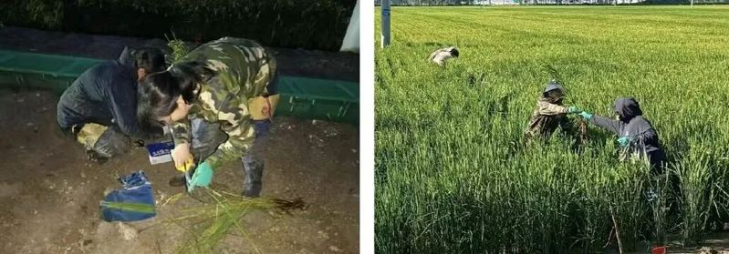 8月,团队成员高玉玲老师带领学生开展水稻田间调查和取样工作,通过不同种类外源植物生长调节剂的叶面喷施旨在解析秸秆还田对根系发育的早期抑制及外源调节剂的恢复效应,以及秸秆还田下生理指标变化与产量损失关联路径,深入阐明调节剂协同根系活力恢复与根际还原物质消减的反馈机制,为农场秸秆还田障碍绿色防控提供理论依据与技术参数。