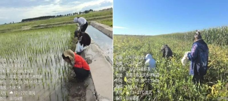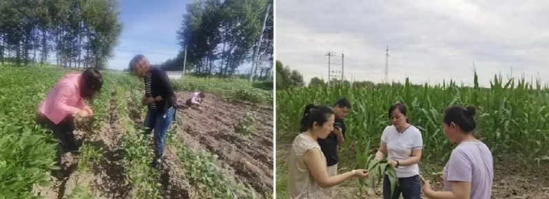 6-10月,张海燕副教授、台莲梅教授、赵长江教授、刘聪鹤老师等人定期到林甸县农户田内调查当地水稻、玉米以及大豆的病虫害发生情况,了解当地作物病虫害发生动态情况,指导当地农户作物安全生产;团队联合中国农业科学院植物保护研究所,针对林甸农户种植的水稻、玉米和大豆每周进行病虫害调查,通过室外调查与室内种类鉴定相结合,及时发现并解决有关问题,杜绝作物病虫害的发生。