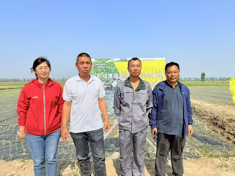 2025年5月16日汪秀志赴双鸭山市二九一农场进行生物降解膜覆膜机插水稻技术指导。