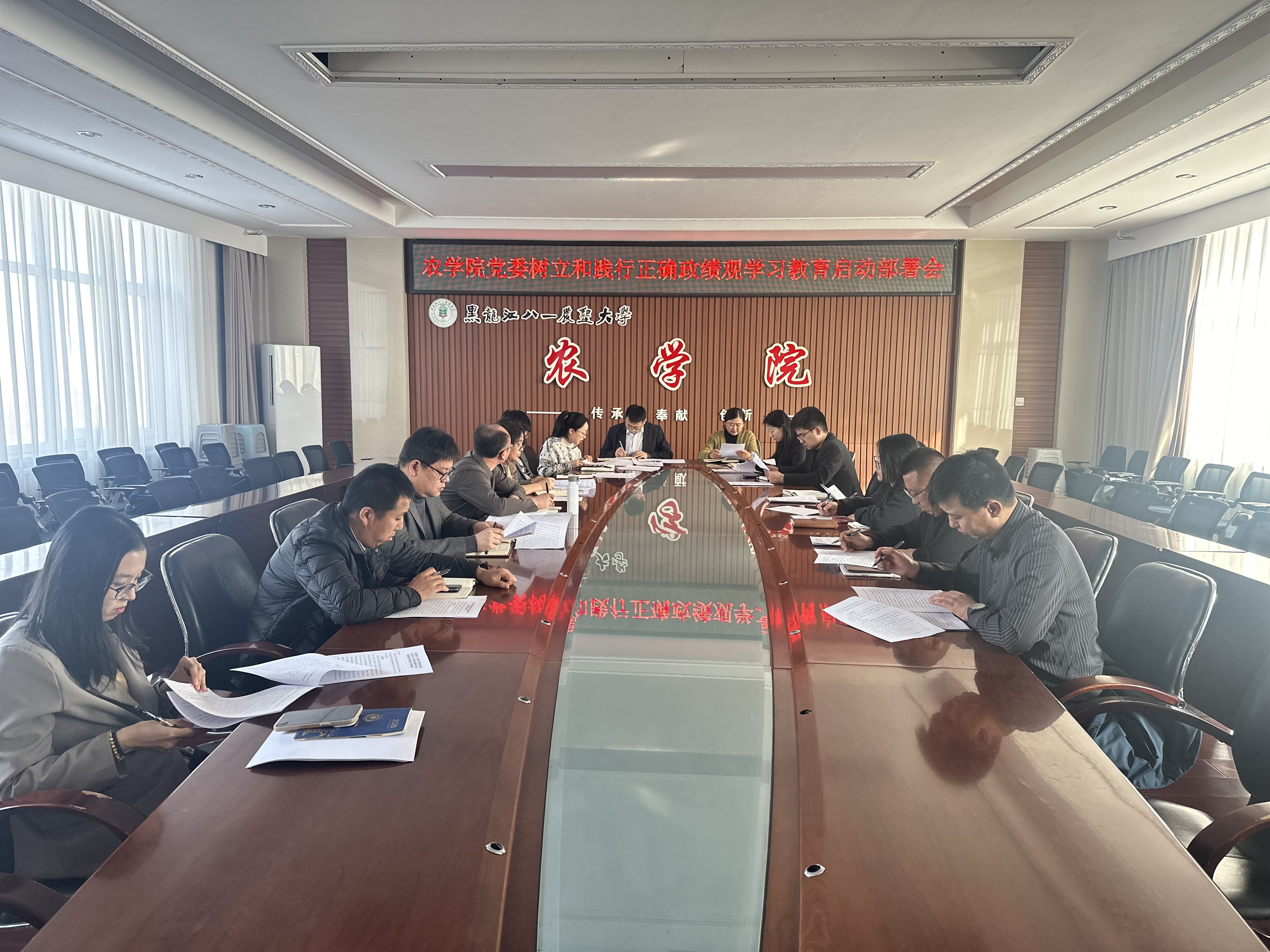 会议传达学习习近平总书记关于树立和践行正确政绩观学习教育的重要讲话重要指示精神、黑龙江省委党的建设工作领导小组相关文件精神及学校党委常委会会议精神,审议通过《农学院开展树立和践行正确政绩观学习教育实施方案》,并对学院扎实推进学习教育进行全面部署。