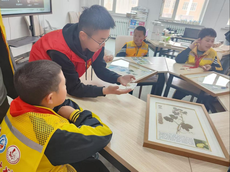 激光雕刻体验环节中,社团成员演示操作流程,引导孩子们感受现代科技与传统种艺文化的交融之美,激发创新思维,拓宽视野。同时,社团成员围绕北大荒精神,为孩子们讲解“自力更生、艰苦创业、勇于开拓、甘于奉献”的精神内涵,并结合基础农学知识,帮助他们了解农耕文化,厚植爱农兴农情怀。